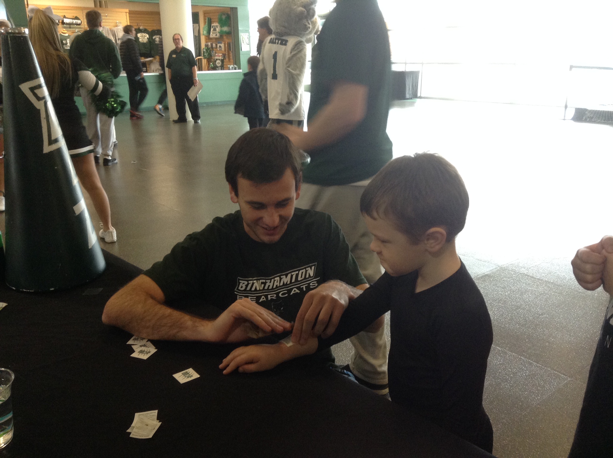 IMG_0069 November 3, 2014 2056 × 1536 Green Day Friday Recap 10-24-14 and 10-31-14 VP of Marketing Nate Holahan gives a young Bearcats fan a BU Zoo temporary tattoo
