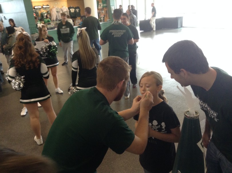 IMG_0074 November 3, 2014 2056 × 1536 Green Day Friday Recap 10-24-14 and 10-31-14 Ryan Young paints a young fan’s face at the men’s basketball game